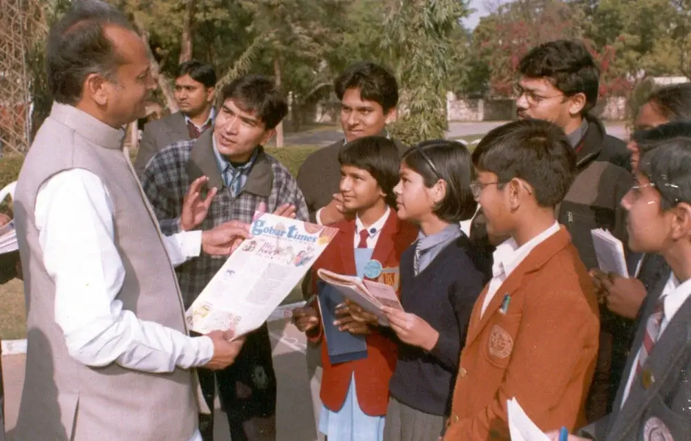 Introducing school club children and their work to CM Ashok Gehlot